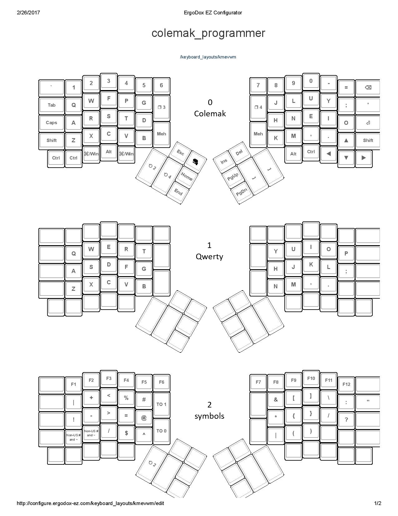 I came to this layout after several iterations. It is not the ultimate best ergonomic layout but it is the best if you switch back and forth between ergodox and laptops.